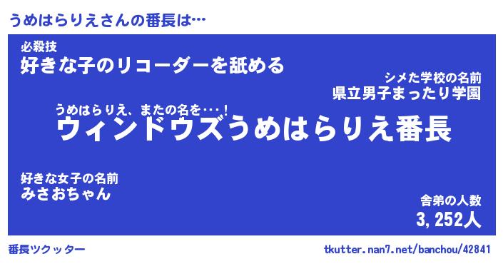 | ファンタジー風あだ名 | 『ウメフェル』『ファントムウメス』 |