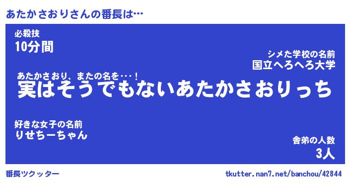 | 意味不明あだ名 | 『ペロリンあたかさおり』 |
