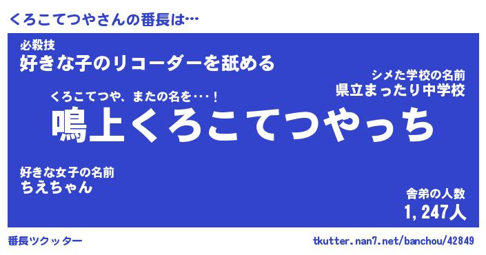 | 伝説のあだ名 | 『封印されしスナイパーくろこてつや』 |