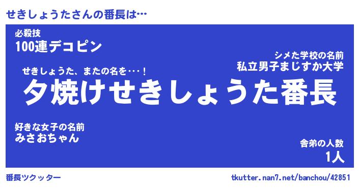 | 男性向けラノベタイトル風あだ名 | 『セキショウタアートオンライン』 |