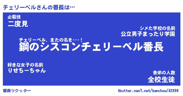 | ヒーロー風カッコイイあだ名 | 『スーパーチェリーベル』『暗黒騎士チェ』 |