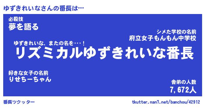 | 伝説のあだ名 | 『伝説のスナイパーゆずきれいな』 |