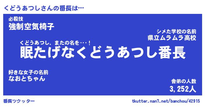 | ヒーロー風カッコイイあだ名 | 『スーパークドウアツシ』『幻影騎士クド』 |
