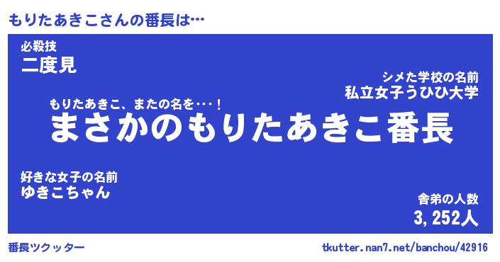 | ヒーロー風カッコイイあだ名 | 『スーパーモリタアキコ』『炎刃騎士モリ』 |