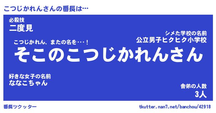 | 男性向けラノベタイトル風あだ名 | 『こつじかれんの憂鬱』 |