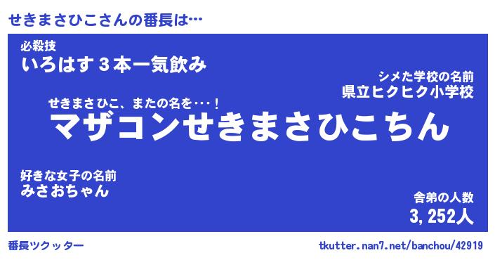 | 肩書あだ名 | 『せきまさひこCEO』『せきまさひこ団長』 |