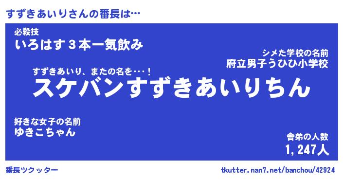 | ヒーロー風カッコイイあだ名 | 『スーパースズキアイリ』『銀牙騎士スズ』 |