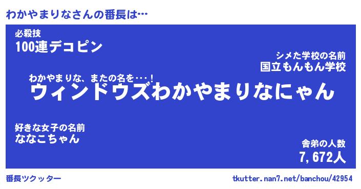 | 2回繰り返すあだ名 | 『わかわか』『わわかか』『ぬめぬめ』 |
