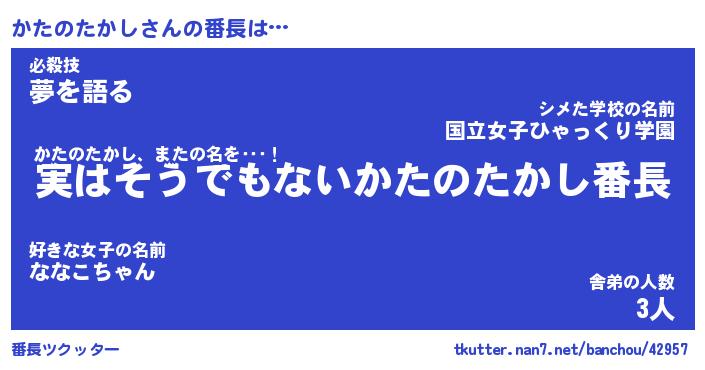 | ヒーロー風カッコイイあだ名 | 『スーパーカタノタカシ』『魔戒騎士カタ』 |