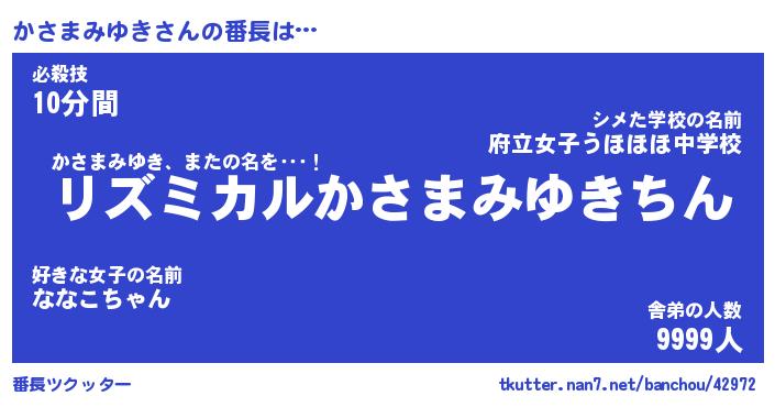 | 伝説のあだ名 | 『伝説のスナイパーかさまみゆき』 |