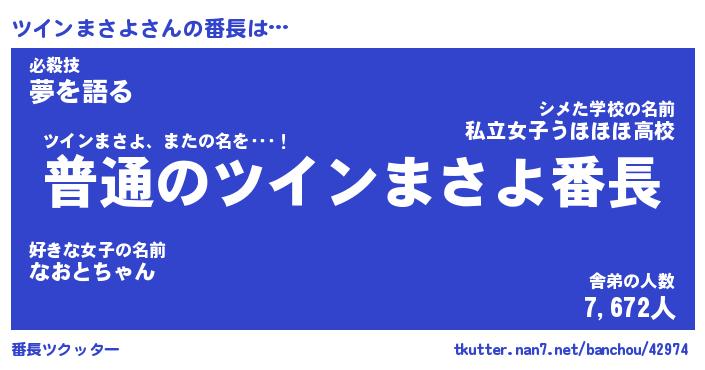 | ヒーロー風カッコイイあだ名 | 『スーパーツインマサヨ』『炎刃騎士ツイ』 |