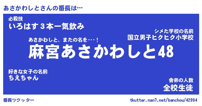 | ヘコむあだ名 | 『あさふぇ~』『牛乳』『あさっぺ』 |