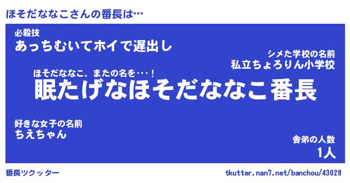 | 伝説のあだ名 | 『封印されしスナイパーほそだななこ』 |