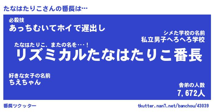 | ヒーロー風カッコイイあだ名 | 『スーパータナハタリコ』『炎刃騎士タナ』 |