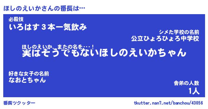 | ヒーロー風カッコイイあだ名 | 『スーパーホシノエイカ』『黄金騎士ホシ』 |