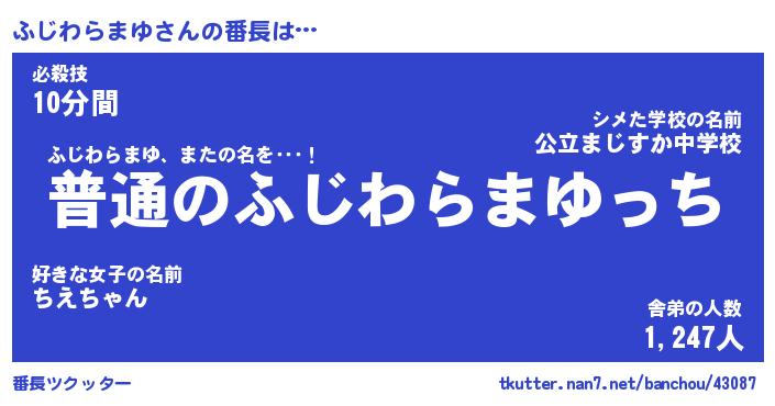 | ヒーロー風カッコイイあだ名 | 『スーパーフジワラマユ』『銀牙騎士フジ』 |