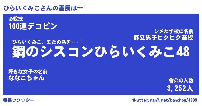 | ピコ太郎風あだ名 | 『ヒコ十郎』『ピヒ五郎』『ヒラ六郎』 |