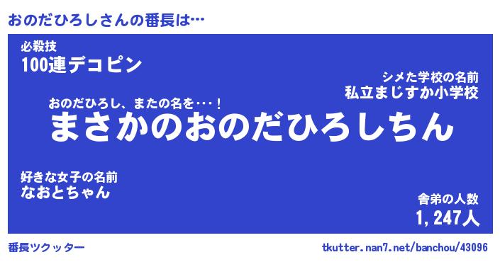 | 伝説のあだ名 | 『伝説のスナイパーおのだひろし』 |