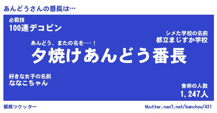 | ヒーロー風カッコイイあだ名 | 『スーパーアンドウ』『黄金騎士アン』 |