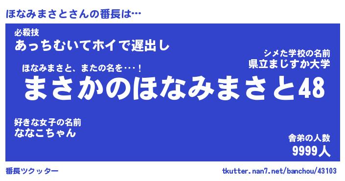 | 伝説のあだ名 | 『伝説のスナイパーほなみまさと』 |