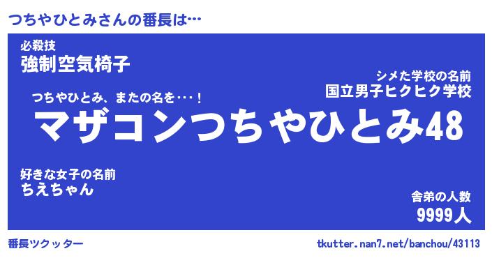 | 伝説のあだ名 | 『封印されしスナイパーつちやひとみ』 |