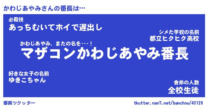 | ヒーロー風カッコイイあだ名 | 『スーパーカワジアヤミ』『暗黒騎士カワ』 |