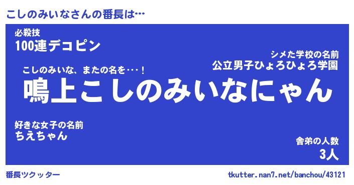 | 欧米人風あだ名 | 『マイケルこしのみいな』 |