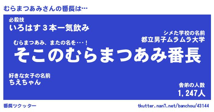 | ポケモン風あだ名 | 『ムラチュウ』『ムラマダネ』 |