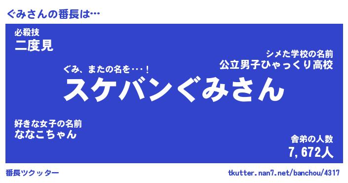 | ヘコむあだ名 | 『ぐみふぇ~』『酢こんぶ』『ぐみお』 |
