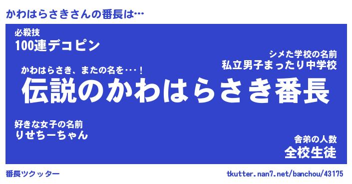 | 伝説のあだ名 | 『伝説の竜騎士かわはらさき』 |