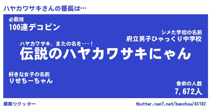 | ヒーロー風カッコイイあだ名 | 『スーパーハヤカワサキ』『炎刃騎士ハヤ』 |