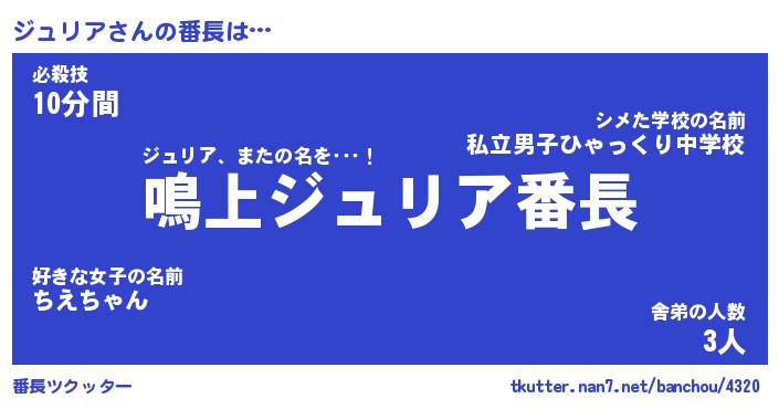 | 意味不明あだ名 | 『ペロリンジュリア』『永久保存ジュリア』 |