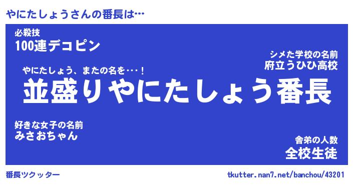 | ヒーロー風カッコイイあだ名 | 『スーパーヤニタショウ』『黄金騎士ヤニ』 |