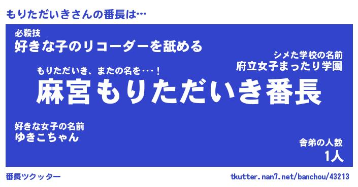| ポケモン風あだ名 | 『モリチュウ』『モリタダネ』 |
