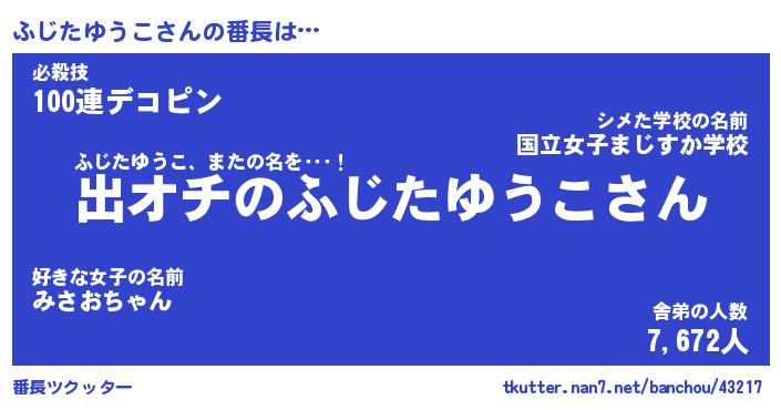 | ピコ太郎風あだ名 | 『フコ二郎』『ピフ次郎』『フジ十郎』 |