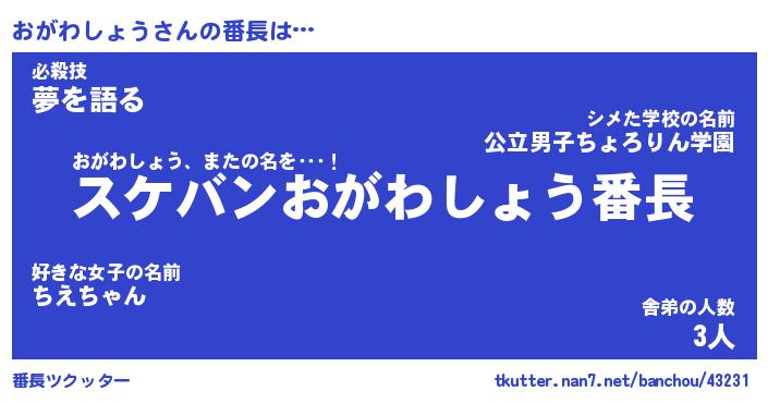 | ピコ太郎風あだ名 | 『オコ五郎』『ピオ史郎』『オガ四郎』 |