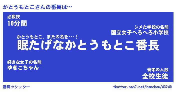 | ヒーロー風カッコイイあだ名 | 『スーパーカトウモトコ』『暗黒騎士カト』 |
