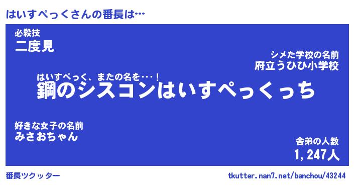 | 肩書あだ名 | 『はいすぺっく店長』『はいすぺっく団長』 |