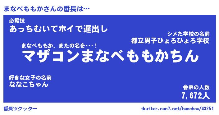 | 意味不明あだ名 | 『ペロリンまなべももか』 |