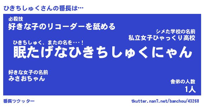 | ポケモン風あだ名 | 『ヒキチュウ』『ヒキチダネ』 |