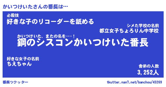 | ヘコむあだ名 | 『かいっふぃ~』『酢こんぶ』 |
