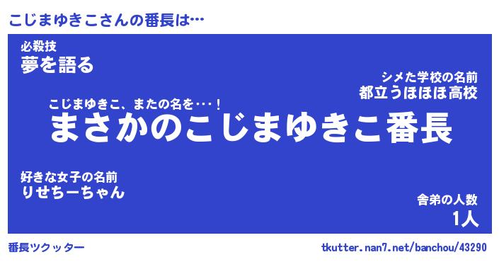 | 女子向けラノベタイトル風あだ名 | 『(仮)こじまゆきこのやんごとなき事情』 |