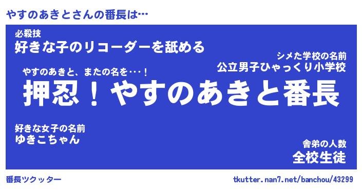 | 伝説のあだ名 | 『封印されしスナイパーやすのあきと』 |