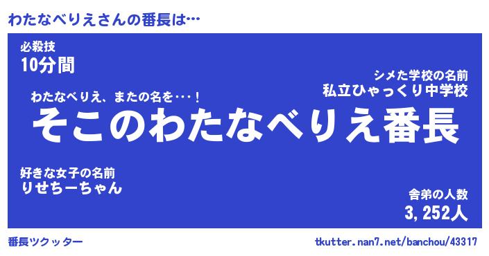 | ヒーロー風カッコイイあだ名 | 『スーパーワタナベリエ』『幻影騎士ワタ』 |