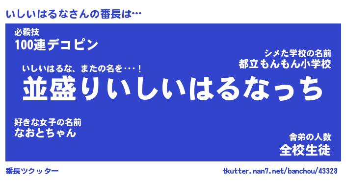 | ピコ太郎風あだ名 | 『イコ三郎』『ピイ太郎』『イシ六郎』 |