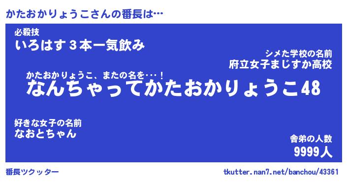 | ヘコむあだ名 | 『かたふぇ~』『牛乳』『かたっ子』 |