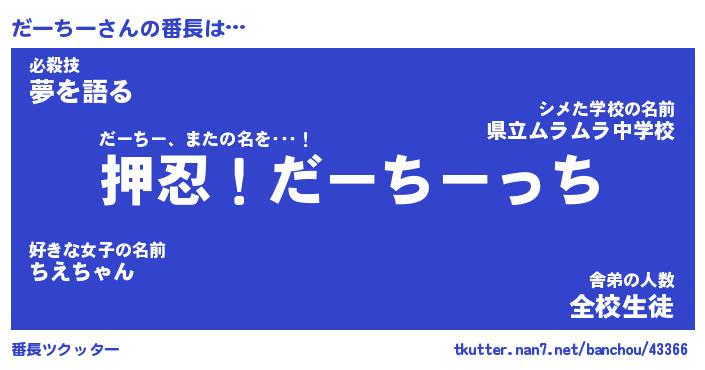| 意味不明あだ名 | 『ペロリンだーちー』『永久保存だーちー』 |