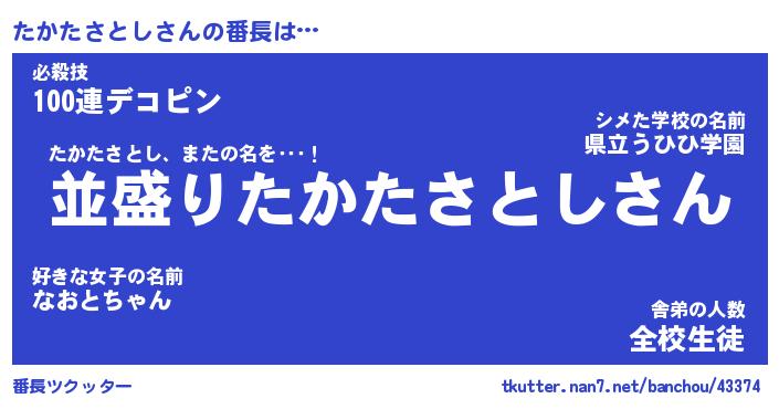 | 伝説のあだ名 | 『不死鳥のスナイパーたかたさとし』 |