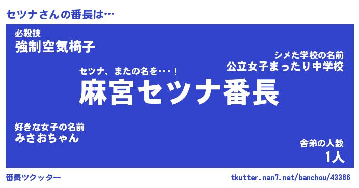 | ヒーロー風カッコイイあだ名 | 『スーパーセツナ』『ウルトラセツナマン』 |