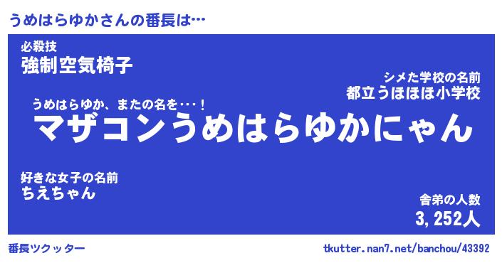 | ヘコむあだ名 | 『うめにー』『つくし』『うめっぺ』 |